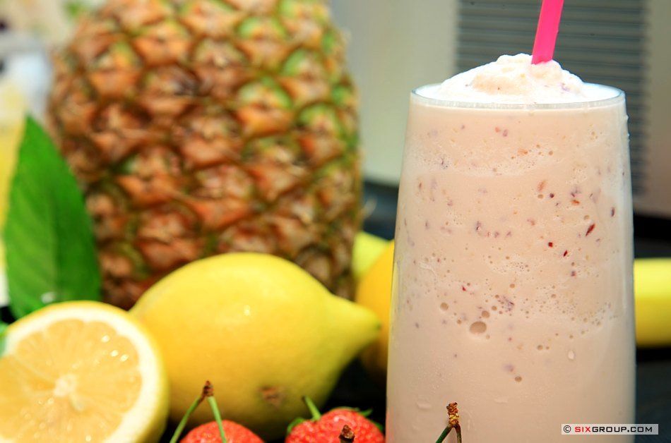 Milch mit Eis im Mixer kurz mixen, bis alles cremig ist.