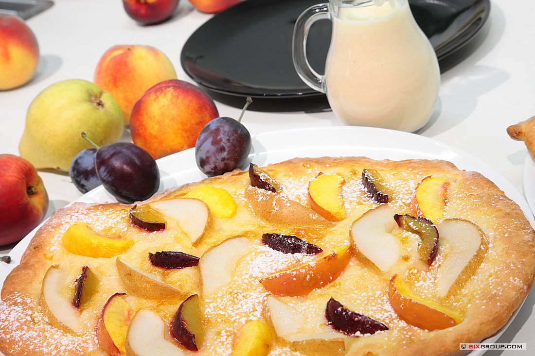 Früchte darauf verteilen und mit 2EL Zucker bestreuen.