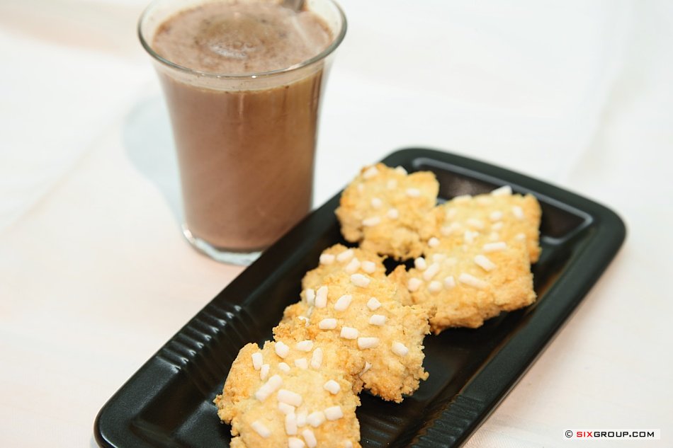 Mit 2Teelöffeln kleine Häufchen auf die Bleche setzen. 1Eiweiß verquirlen und die Kekse damit bestreichen. Hagelzucker daraufstreuen.