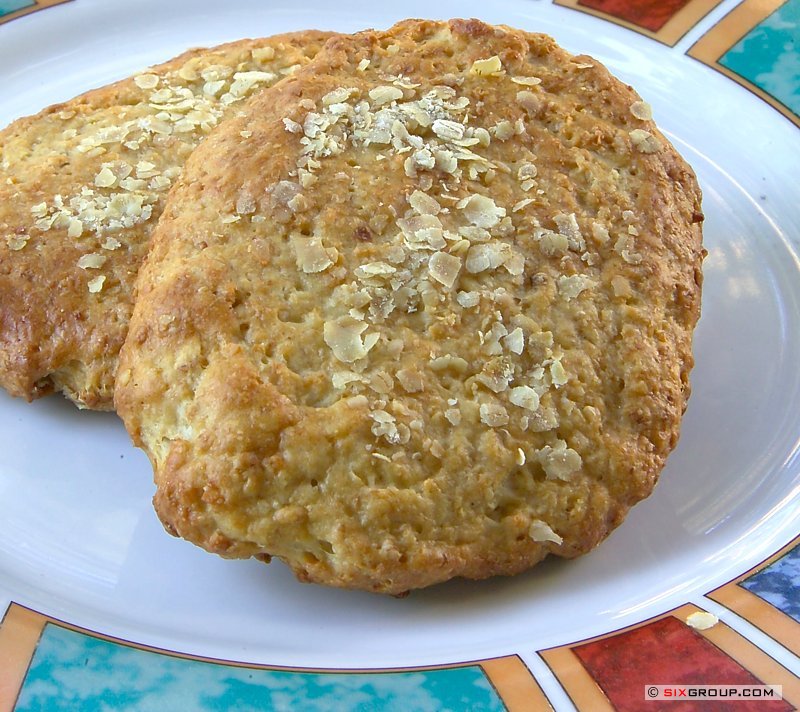 Ei mit 1EL Wasser verrühren, Fladen damit bestreichen, nach Belieben mit Haferflocken bestreuen und ca. 20-25 Min. backen.