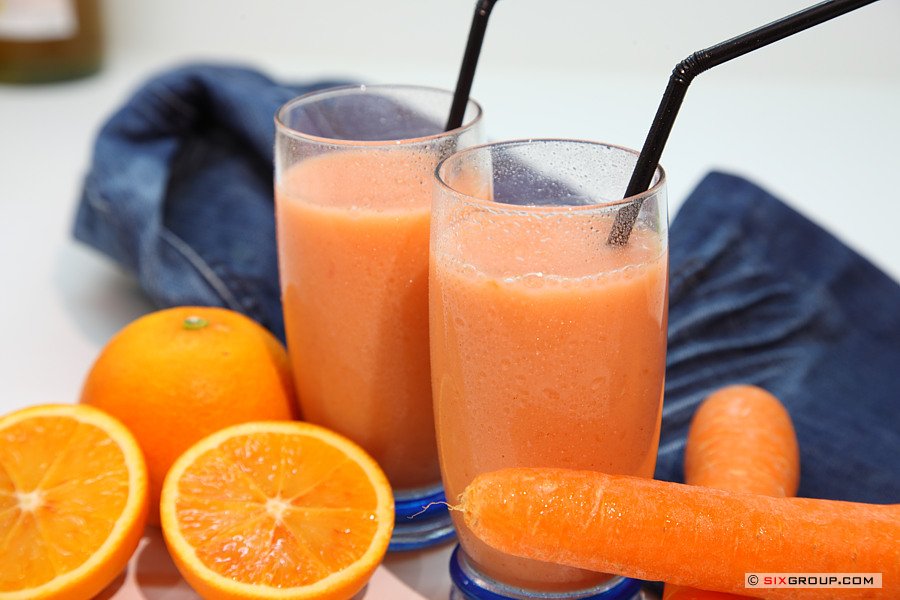 Den frisch gepressten Orangensaft mit Karottensaft, Orangenblütenhonig sowie Zimt verrühren. Danach die gut gekühlte Buttermilch unterrühren und den Karotten- Orangen- Drink auf 4Gläser verteilen.