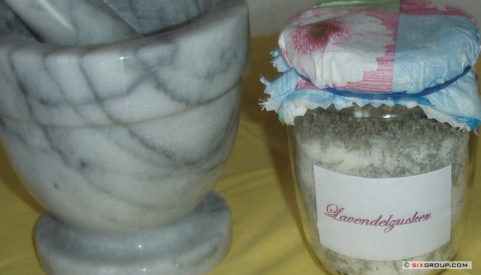 150g Feinkristallzucker werden mit 1,5 EL der getrockneten, zerkleinerten Lavendelblüten vermischt und in ein Glas mit Schraubverschluss gefüllt. Das Glas mit dem Lavendelzucker lichtgeschützt an einem nicht zu warmen Ort 8 bis 10 Tage aufbewahren. Danach ist der Lavendelzucker gebrauchsfertig und kann als Alternative zu Vanillezucker verwendet werden.