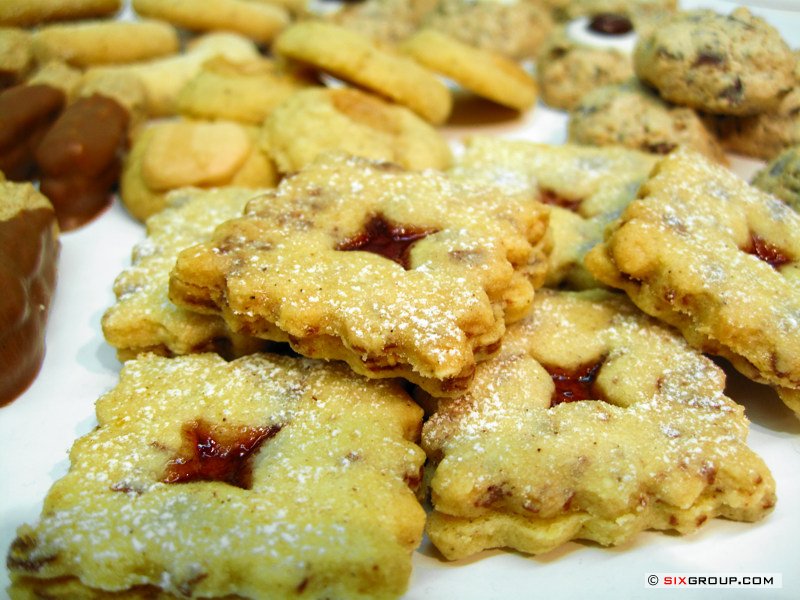 Teig dünn ausrollen. Mit einem Teigrad Quadrate ausschneiden oder mit einer quadratischen Ausstechform Quadrate ausstechen und bei der Hälfte davon in der Mitte einen kleinen Stern oder Loch ausstechen. Auf ein mit Backpapier belegtes Blech geben und ca. 10Min. backen.